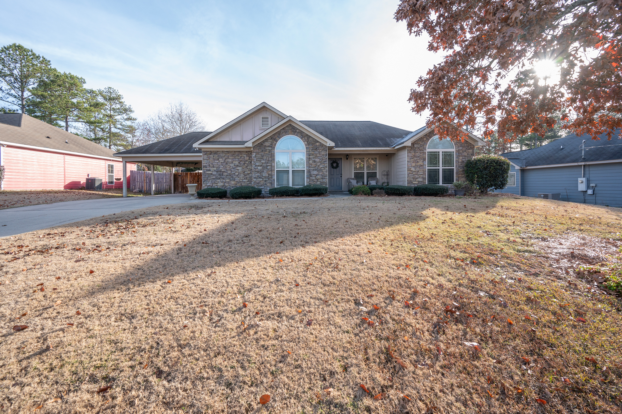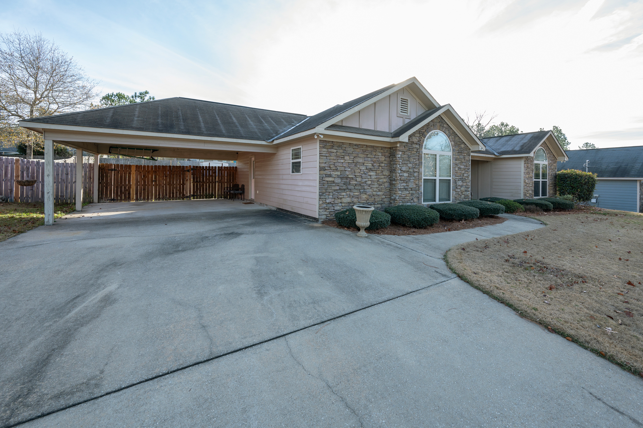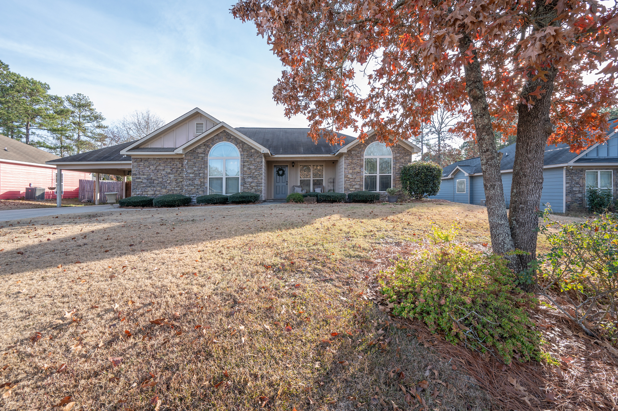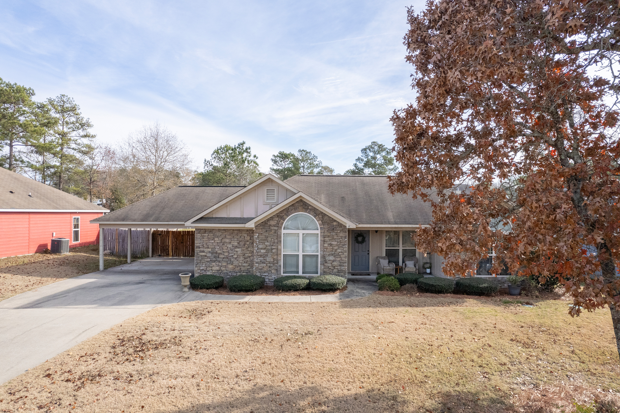 Welcome to Haley Woods where rustic country setting meets city limits! Here you can have the best of both worlds – the serene setting of this Lee County neighborhood offers a fantastic place to unwind after a long day without sacrificing the conveniences of shopping/restaurants etc. This home is perfectly situated just minutes from both Auburn/Opelika or Columbus/Phenix City – no matter your commute, this location can’t be beat! This well maintained craftsman has adorable curb appeal w/ stone accents, front porch overlooking the neighborhood & spacious backyard for all your outdoor needs! Inside the open floor plan is ideal for entertaining! The living room w/ hardwood floors flows directly into the kitchen w/ ample cabinet space, kitchen island for additional prep work, eat in dining area & huge pantry are just some of the bonuses you will find here! The laundry room is large enough to offer additional storage for your needs. The split bedroom layout offers privacy w/ the master suite right off the kitchen. Vaulted ceilings and picture window allows beautiful natural light to fill the room, the walk in closet gives plenty of storage options & the private master ensuite has a deep soak jetted tub, separate shower & dbl vanities! On the opposite side of the house you will fine 2 additional bedrooms & a hall bath perfect for guests. Out back is a wonderful private retreat w/ screened in porch for relaxing, patio space for grilling & privacy fenced yard! This property is move in ready at a spectacular value!