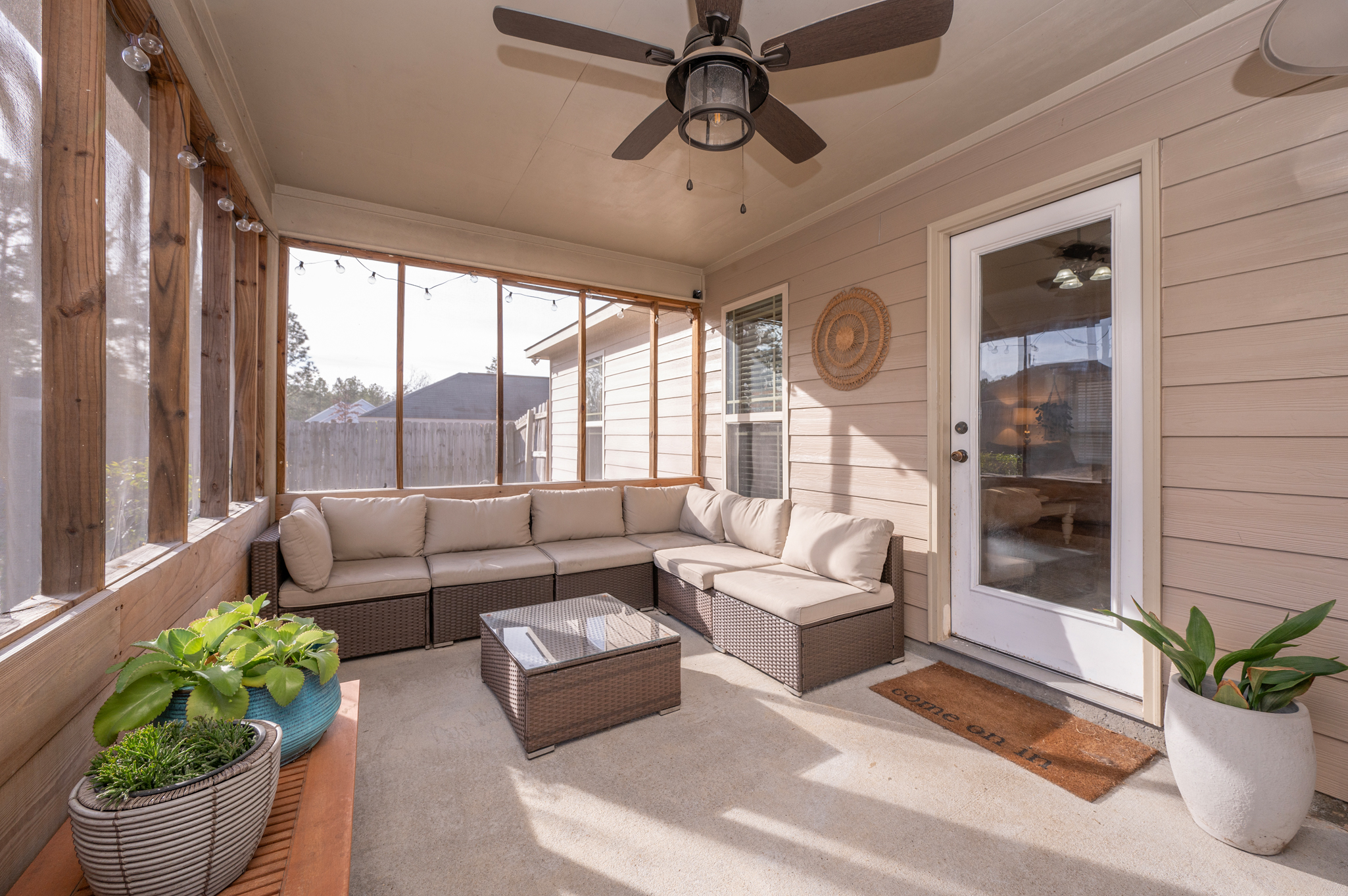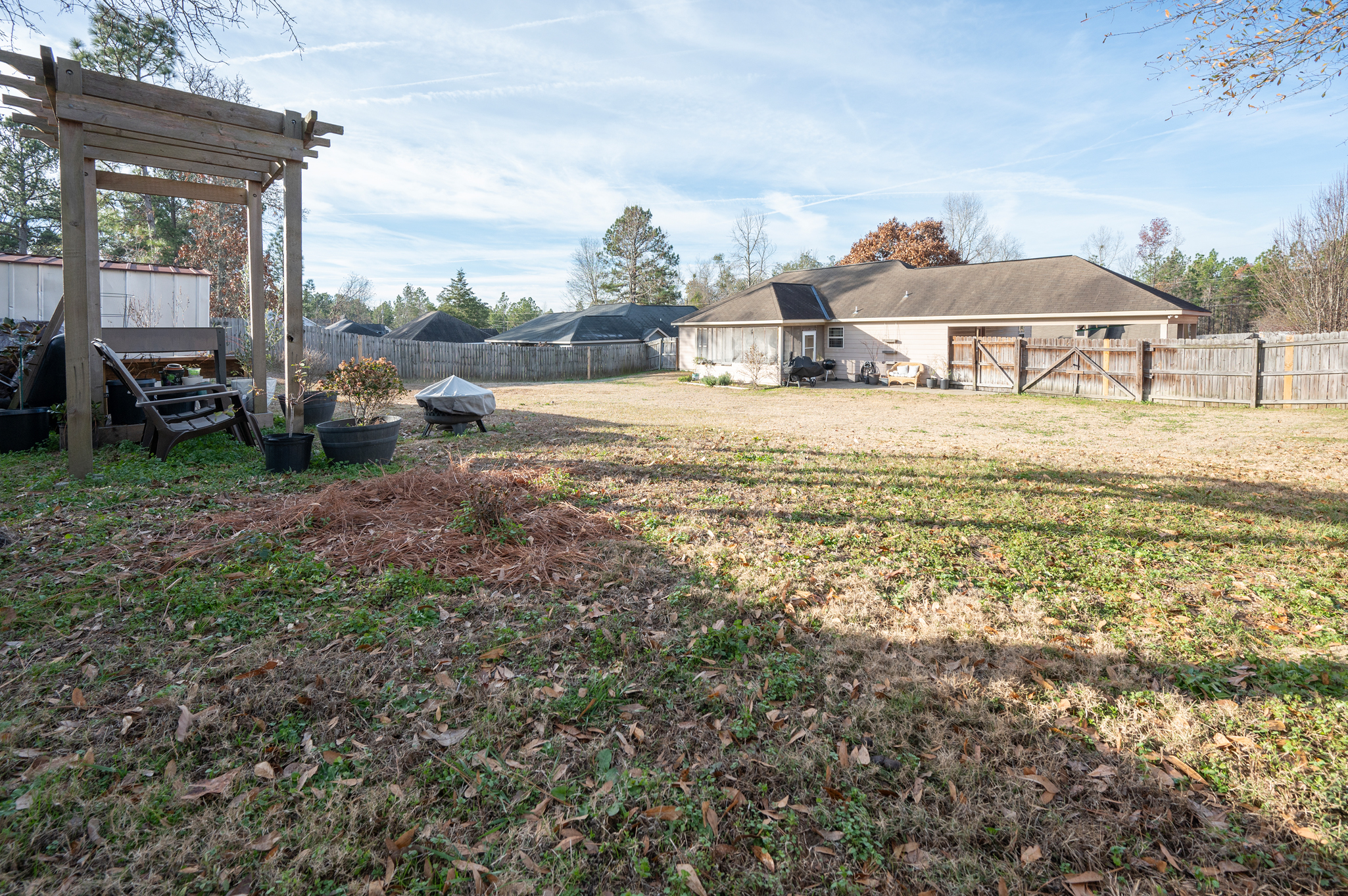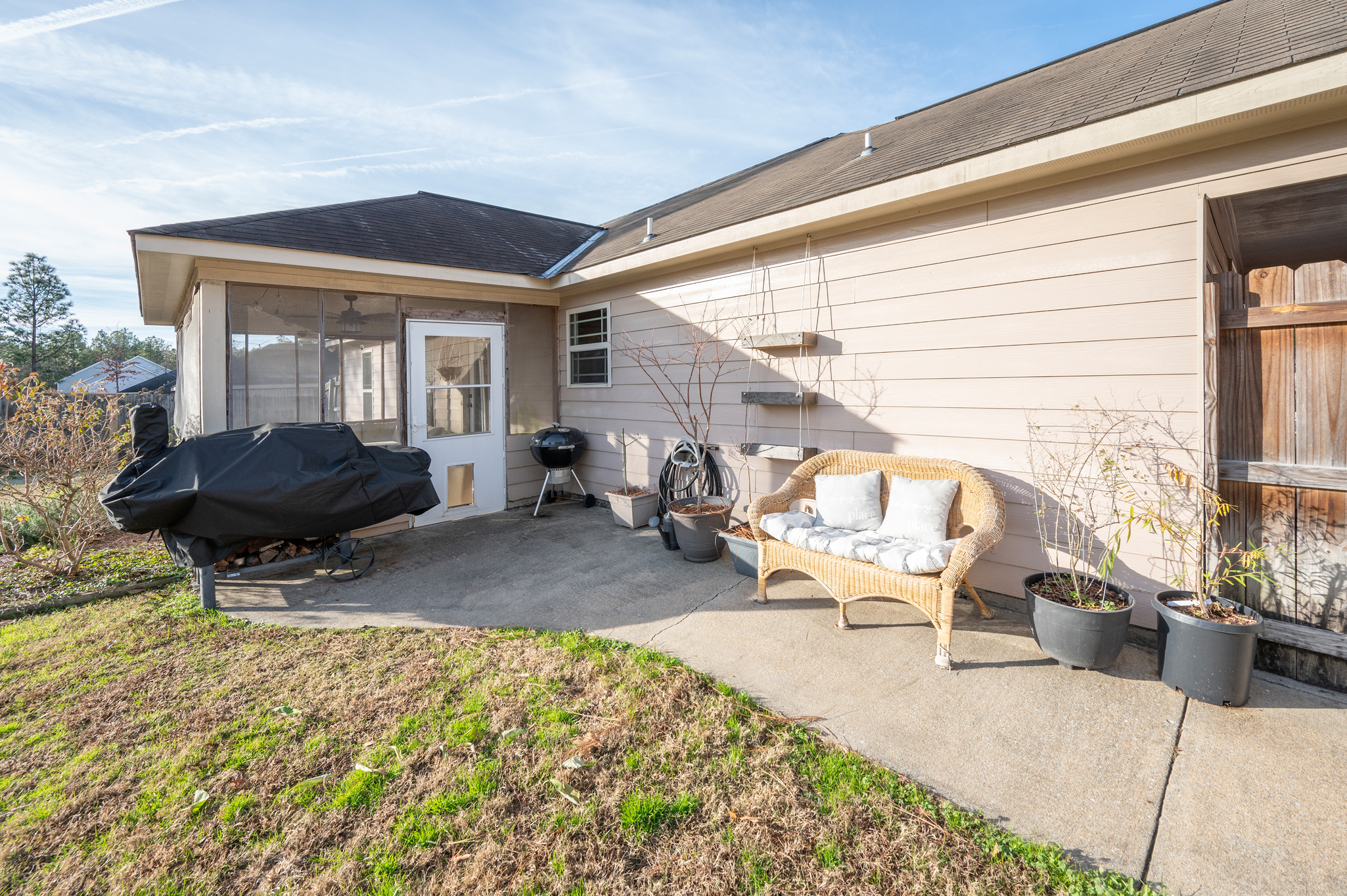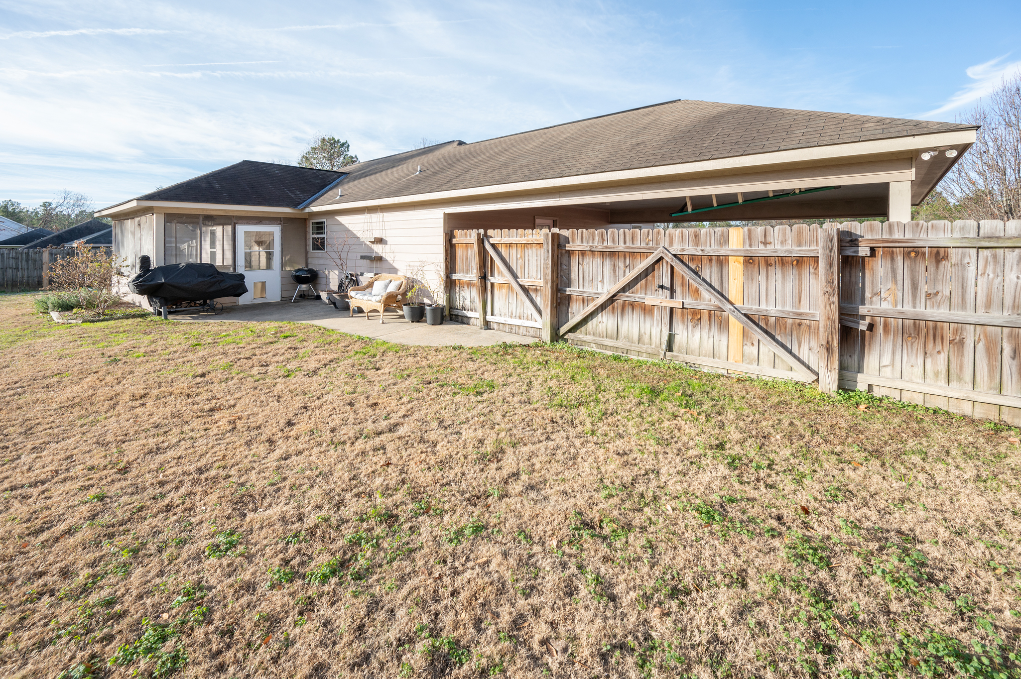Welcome to Haley Woods where rustic country setting meets city limits! Here you can have the best of both worlds – the serene setting of this Lee County neighborhood offers a fantastic place to unwind after a long day without sacrificing the conveniences of shopping/restaurants etc. This home is perfectly situated just minutes from both Auburn/Opelika or Columbus/Phenix City – no matter your commute, this location can’t be beat! This well maintained craftsman has adorable curb appeal w/ stone accents, front porch overlooking the neighborhood & spacious backyard for all your outdoor needs! Inside the open floor plan is ideal for entertaining! The living room w/ hardwood floors flows directly into the kitchen w/ ample cabinet space, kitchen island for additional prep work, eat in dining area & huge pantry are just some of the bonuses you will find here! The laundry room is large enough to offer additional storage for your needs. The split bedroom layout offers privacy w/ the master suite right off the kitchen. Vaulted ceilings and picture window allows beautiful natural light to fill the room, the walk in closet gives plenty of storage options & the private master ensuite has a deep soak jetted tub, separate shower & dbl vanities! On the opposite side of the house you will fine 2 additional bedrooms & a hall bath perfect for guests. Out back is a wonderful private retreat w/ screened in porch for relaxing, patio space for grilling & privacy fenced yard! This property is move in ready at a spectacular value!