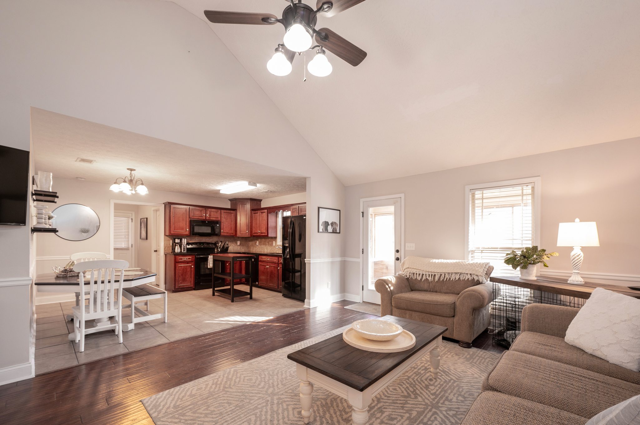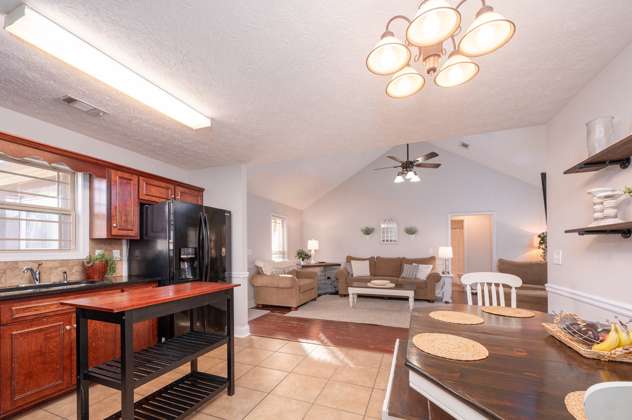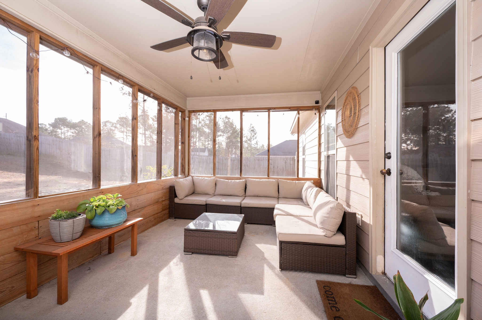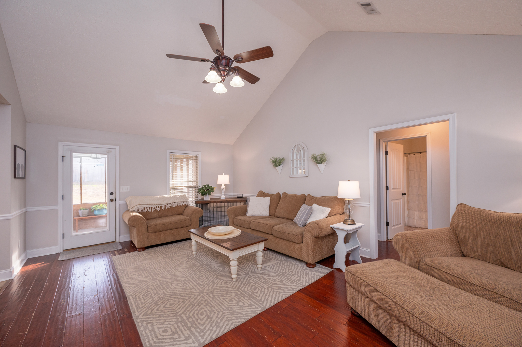 Welcome to Haley Woods where rustic country setting meets city limits! Here you can have the best of both worlds – the serene setting of this Lee County neighborhood offers a fantastic place to unwind after a long day without sacrificing the conveniences of shopping/restaurants etc. This home is perfectly situated just minutes from both Auburn/Opelika or Columbus/Phenix City – no matter your commute, this location can’t be beat! This well maintained craftsman has adorable curb appeal w/ stone accents, front porch overlooking the neighborhood & spacious backyard for all your outdoor needs! Inside the open floor plan is ideal for entertaining! The living room w/ hardwood floors flows directly into the kitchen w/ ample cabinet space, kitchen island for additional prep work, eat in dining area & huge pantry are just some of the bonuses you will find here! The laundry room is large enough to offer additional storage for your needs. The split bedroom layout offers privacy w/ the master suite right off the kitchen. Vaulted ceilings and picture window allows beautiful natural light to fill the room, the walk in closet gives plenty of storage options & the private master ensuite has a deep soak jetted tub, separate shower & dbl vanities! On the opposite side of the house you will fine 2 additional bedrooms & a hall bath perfect for guests. Out back is a wonderful private retreat w/ screened in porch for relaxing, patio space for grilling & privacy fenced yard! This property is move in ready at a spectacular value!