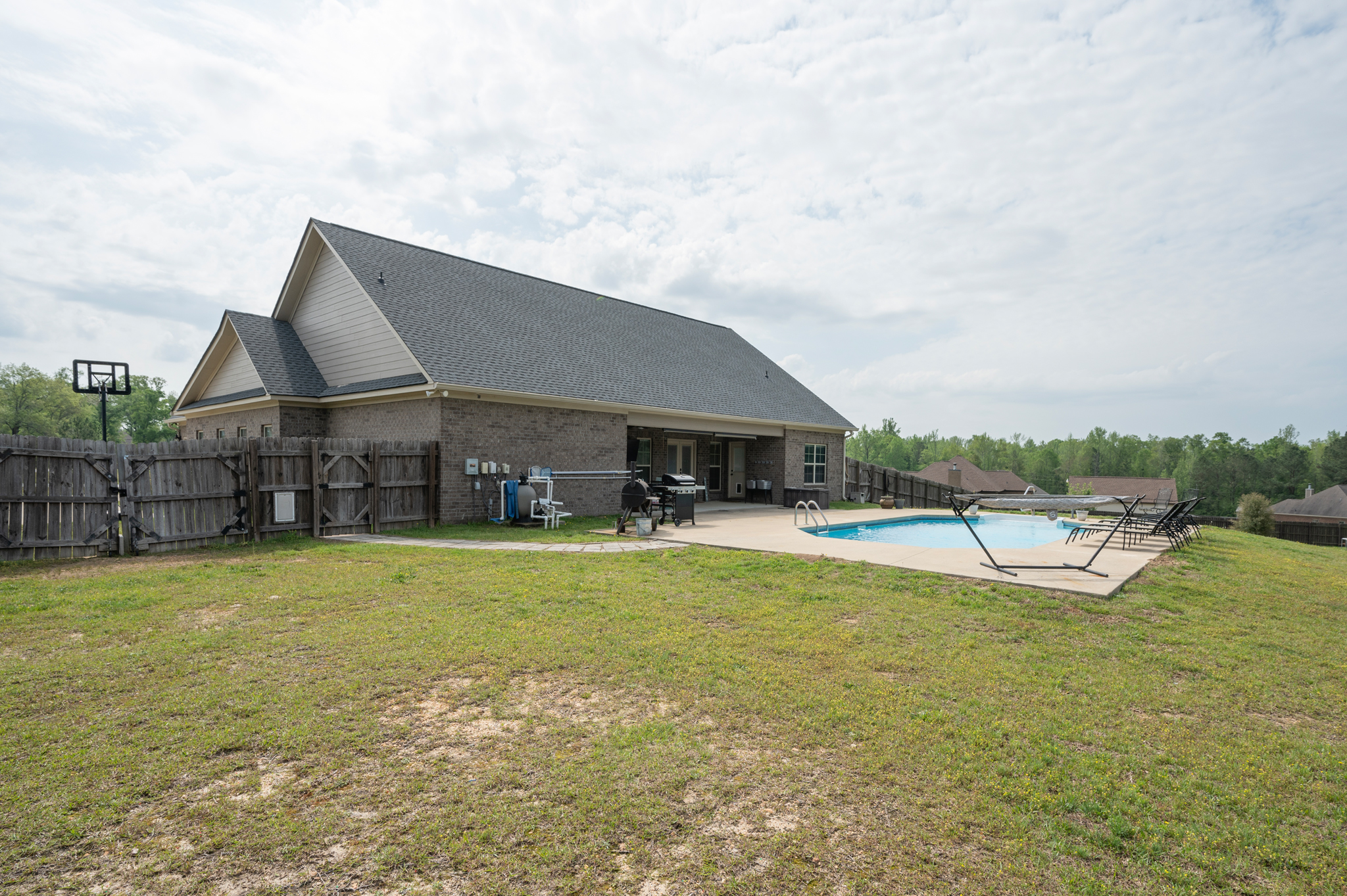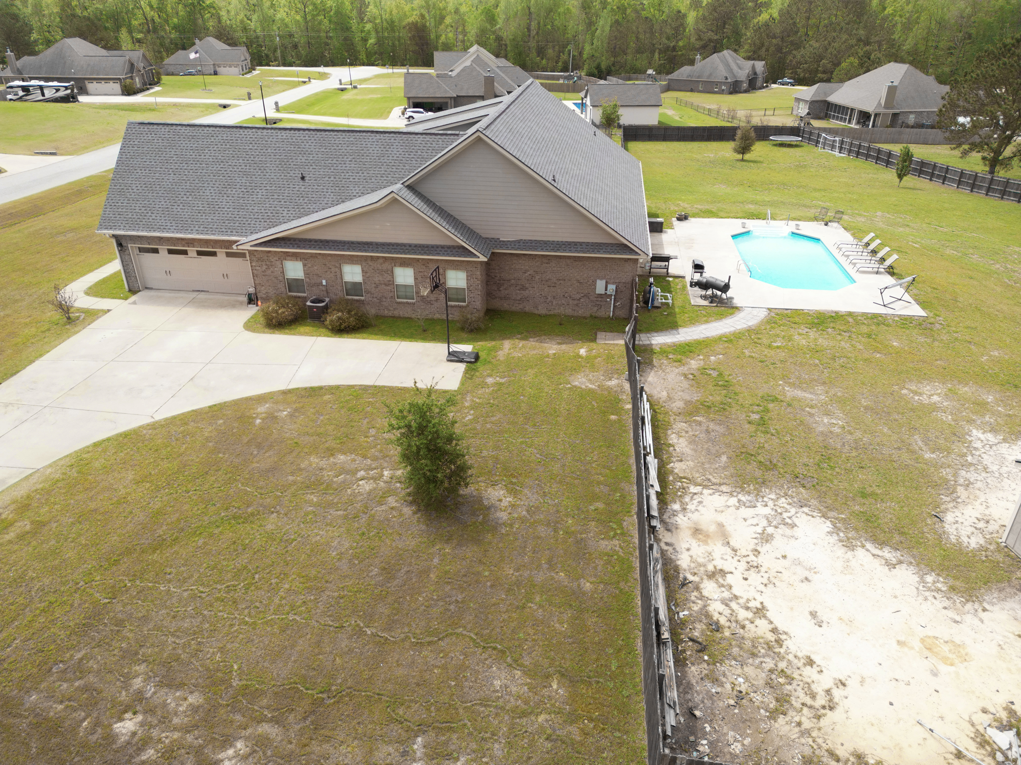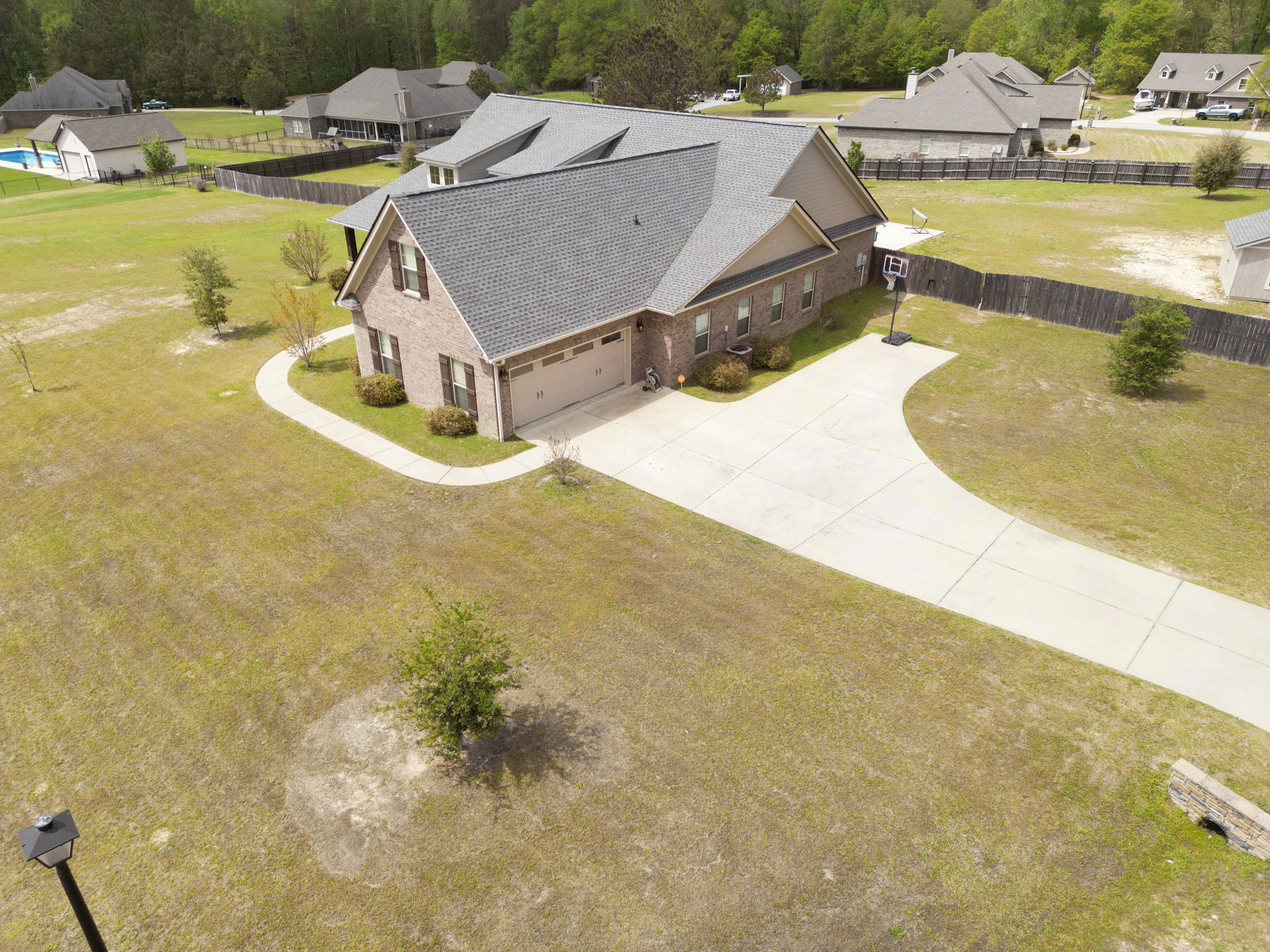 Don’t miss this rare opportunity to own a home in the highly desired Corbett Creek Falls (Lee County)! Located on 1.4 acres, this fantastic corner lot offers an unbeatable back yard oasis w/ in ground pool & plenty of of room to play or store your big toys! Inside the split floor plan is perfect for entertaining & is built for easy upkeep w/ hardwood floors & neutral tones! The living room feels grand w/ vaulted ceilings & opens to the upgraded kitchen (granite, bar area & pantry!) & formal dining area. The master suite is absolutely impressive w/ private office (or great nursery) & an ensuite that feels like a spa! Walk in tile shower w/ double shower heads overlooks the deep soak tub! Half bath for guests & laundry room/mudroom for backpacks or sports gear! One of the guest rooms has back patio access, 2 additional guest rooms offer plenty of space & the hall bathroom is updated! This charming home truly has it all & is a must see!