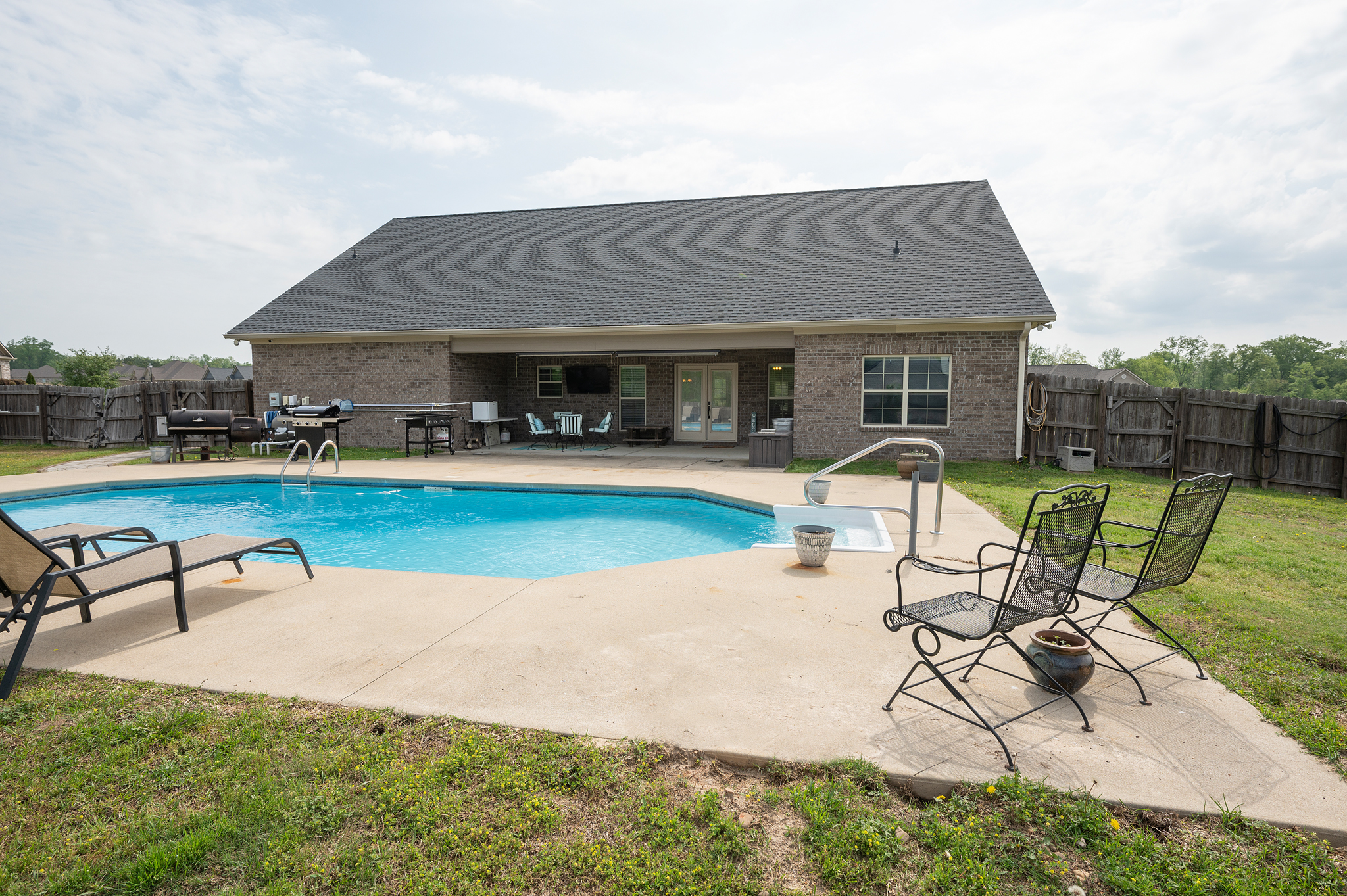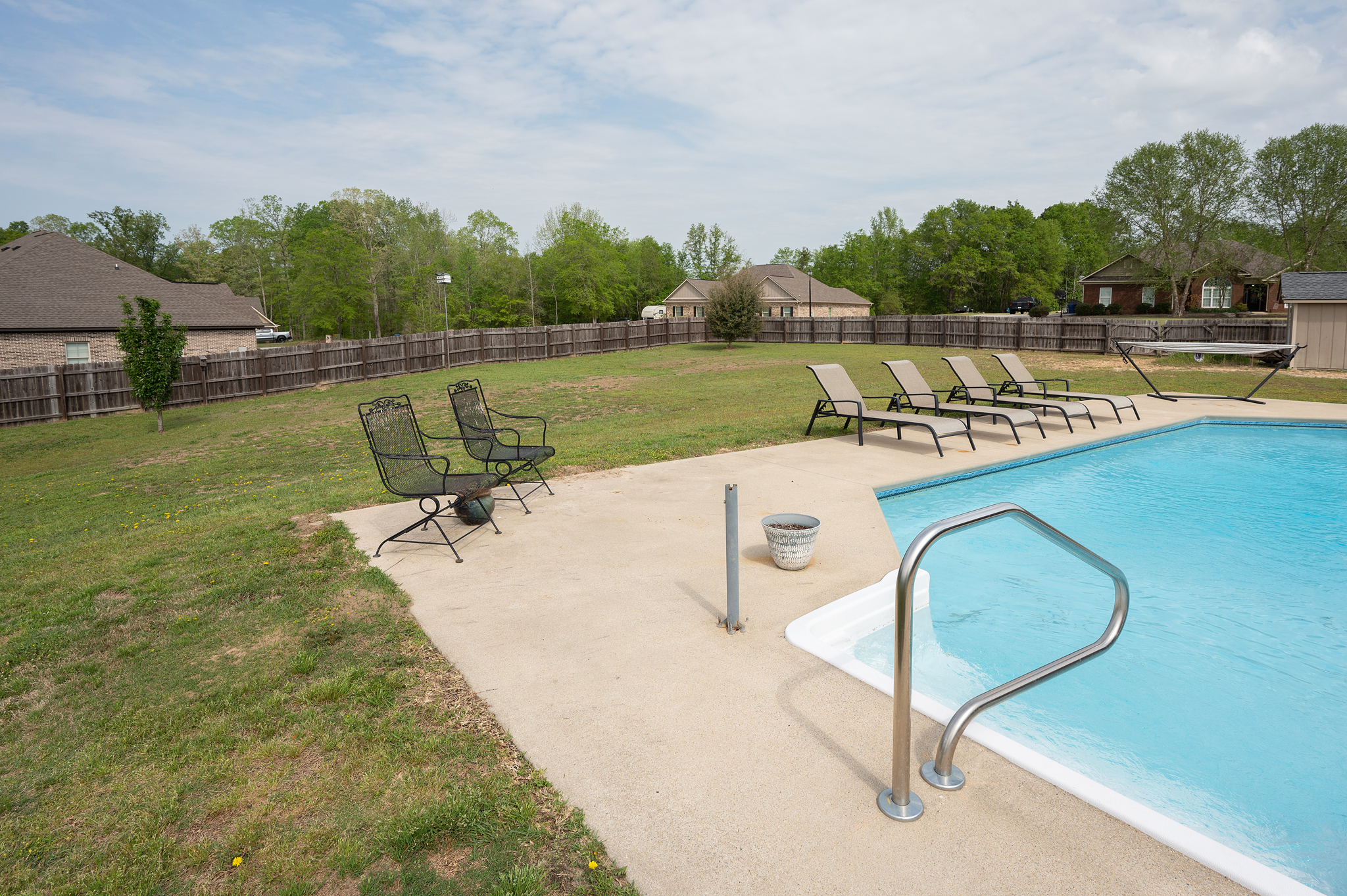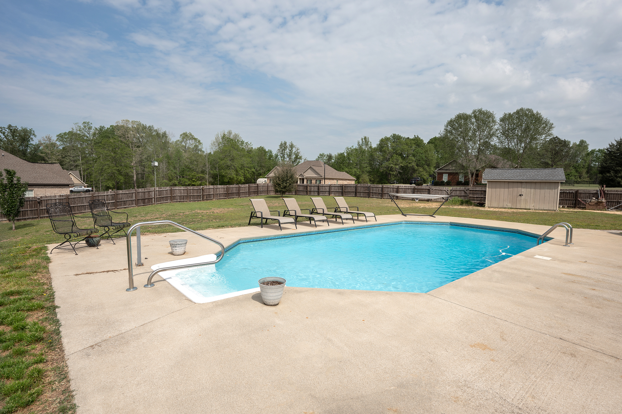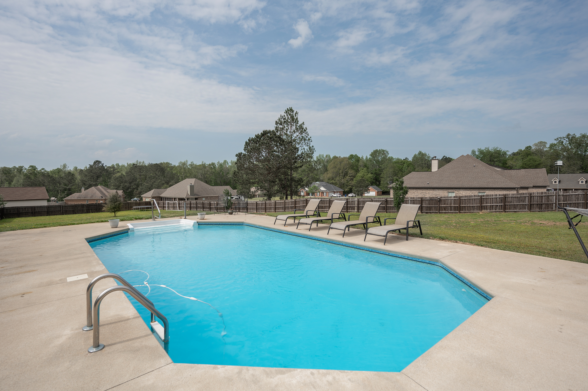 Don’t miss this rare opportunity to own a home in the highly desired Corbett Creek Falls (Lee County)! Located on 1.4 acres, this fantastic corner lot offers an unbeatable back yard oasis w/ in ground pool & plenty of of room to play or store your big toys! Inside the split floor plan is perfect for entertaining & is built for easy upkeep w/ hardwood floors & neutral tones! The living room feels grand w/ vaulted ceilings & opens to the upgraded kitchen (granite, bar area & pantry!) & formal dining area. The master suite is absolutely impressive w/ private office (or great nursery) & an ensuite that feels like a spa! Walk in tile shower w/ double shower heads overlooks the deep soak tub! Half bath for guests & laundry room/mudroom for backpacks or sports gear! One of the guest rooms has back patio access, 2 additional guest rooms offer plenty of space & the hall bathroom is updated! This charming home truly has it all & is a must see!