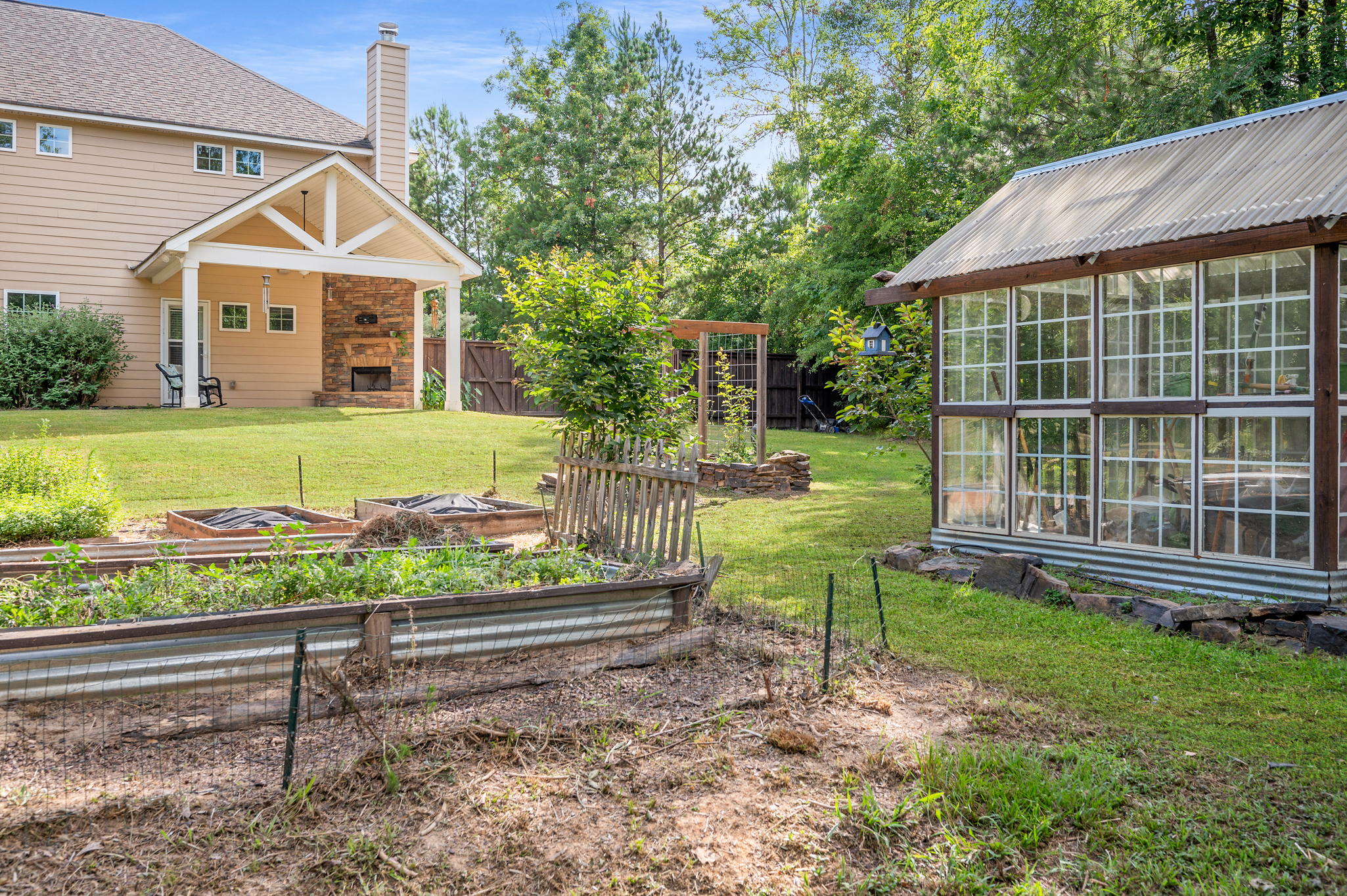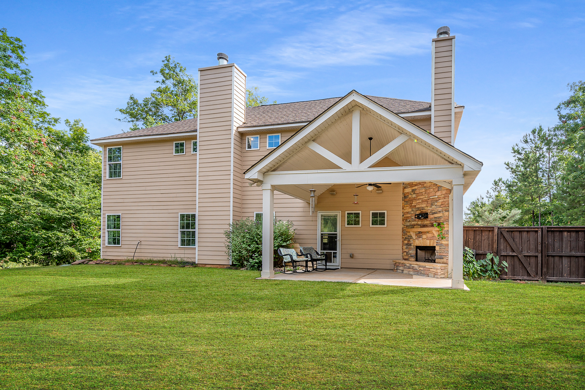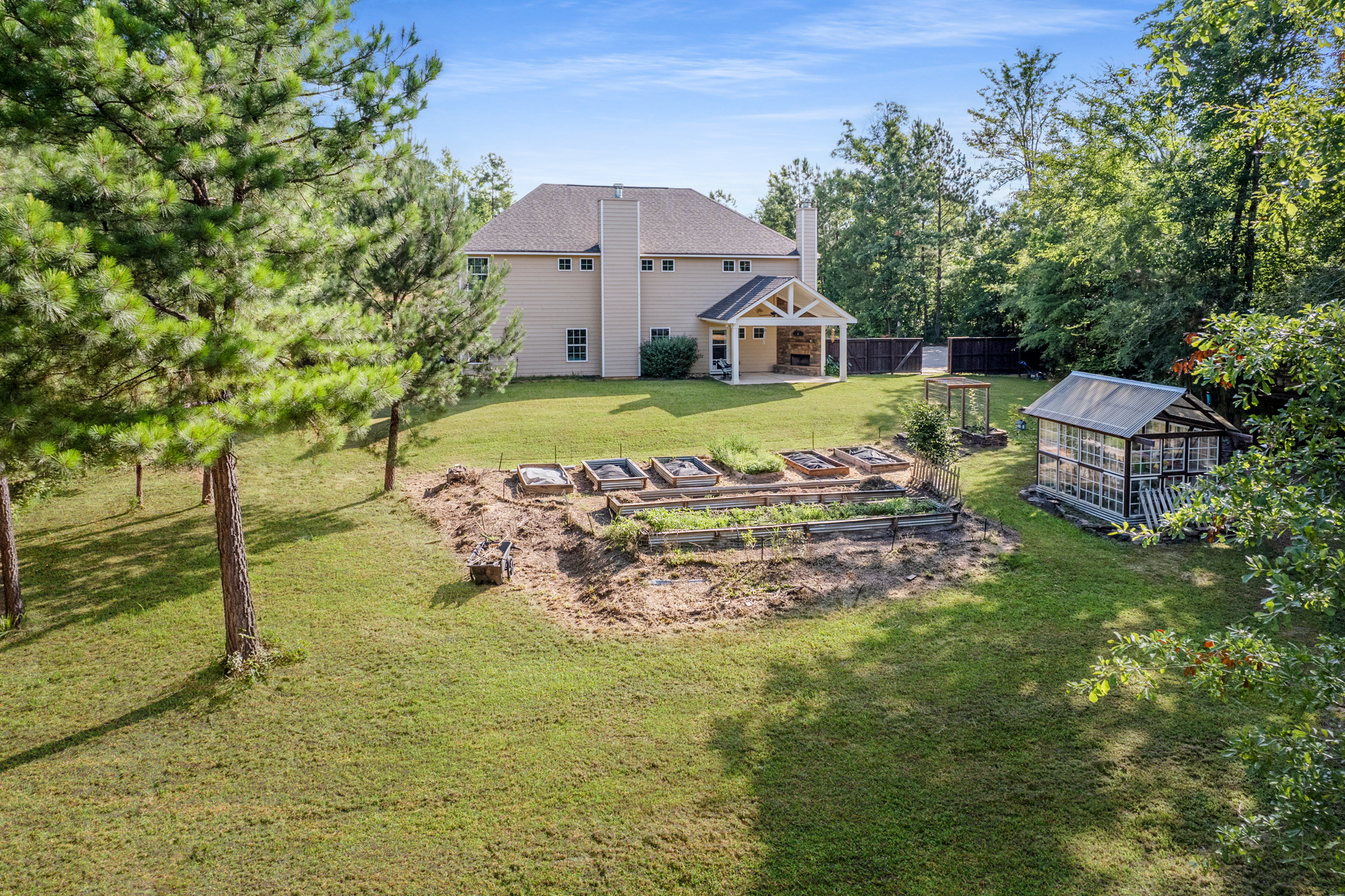 Nestled on a serene 2.25-acre cul-de-sac lot in Hart Preserve, this Harris Co gem offers an enchanting backyard with a private garden and whimsical treehouse, perfect for fun and relaxation! The covered game-day porch with its own fireplace is ideal for year-round gatherings. The main level features versatile living spaces, including a bonus area perfect for a home office, a formal dining room, and a spacious great room with a cozy fireplace and coffered ceilings that flow into the gourmet kitchen. The kitchen offers a large island, stainless appliances, and a roomy walk-in pantry. A convenient main-level bedroom and full bath add to the home’s versatility. Upstairs, the master retreat features an ensuite bath and walk-in closet, while a large bonus room offers endless entertainment possibilities. Three additional bedrooms and a full bath complete the upper level. This well-maintained home is move-in ready and waiting for you!