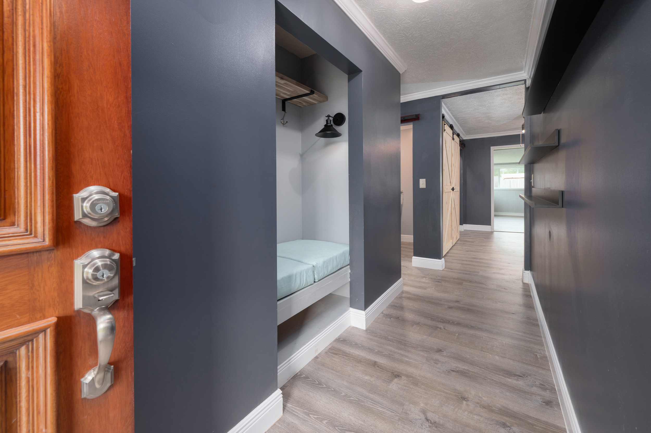 Home appraised for $325,000 in June 2025!! From the outside, 222 Sandra Dr may give “classic brick ranch” vibes—but don’t be fooled. This home is loaded with updates or customized features, making this one-level Smiths Station stunner anything but ordinary. Sitting on a flat, fenced 0.91-acre lot, this home shines with a fully renovated kitchen and baths featuring all new electrical, plumbing, lighting, and thoughtful touches like a 60″ shower, 67″ soaking tub, and new toilets. The kitchen is decked out with custom cabinetry, stainless appliances, sleek backsplash, and fresh counters. Inside, new LVP flooring (with original hardwoods hiding beneath the main living rm, halls & berms), while every interior and exterior door is new—including a solid-core door for the primary suite. The windows? All new from Window World. The back addition (640 sqft) is a huge flex space—perfect for game nights, movie marathons, home workouts, or all of the above. There’s also a bonus sunroom off the carport with a bar area, and even a custom-built book nook just waiting for rainy day reads. The primary ensuite bath feels luxe with modern finishes, while the two guest bedrooms share a half bath. Outside, you’ll find a greenhouse, storage building, and plenty of space to run wild or plant something beautiful. And the best part? Major structural peace of mind: new metal roof, fresh exterior paint, all-new windows, encapsulated crawl space with steel beams and dehumidifier. There’s nothing cookie cutter here—just charm, comfort, and room to dream.