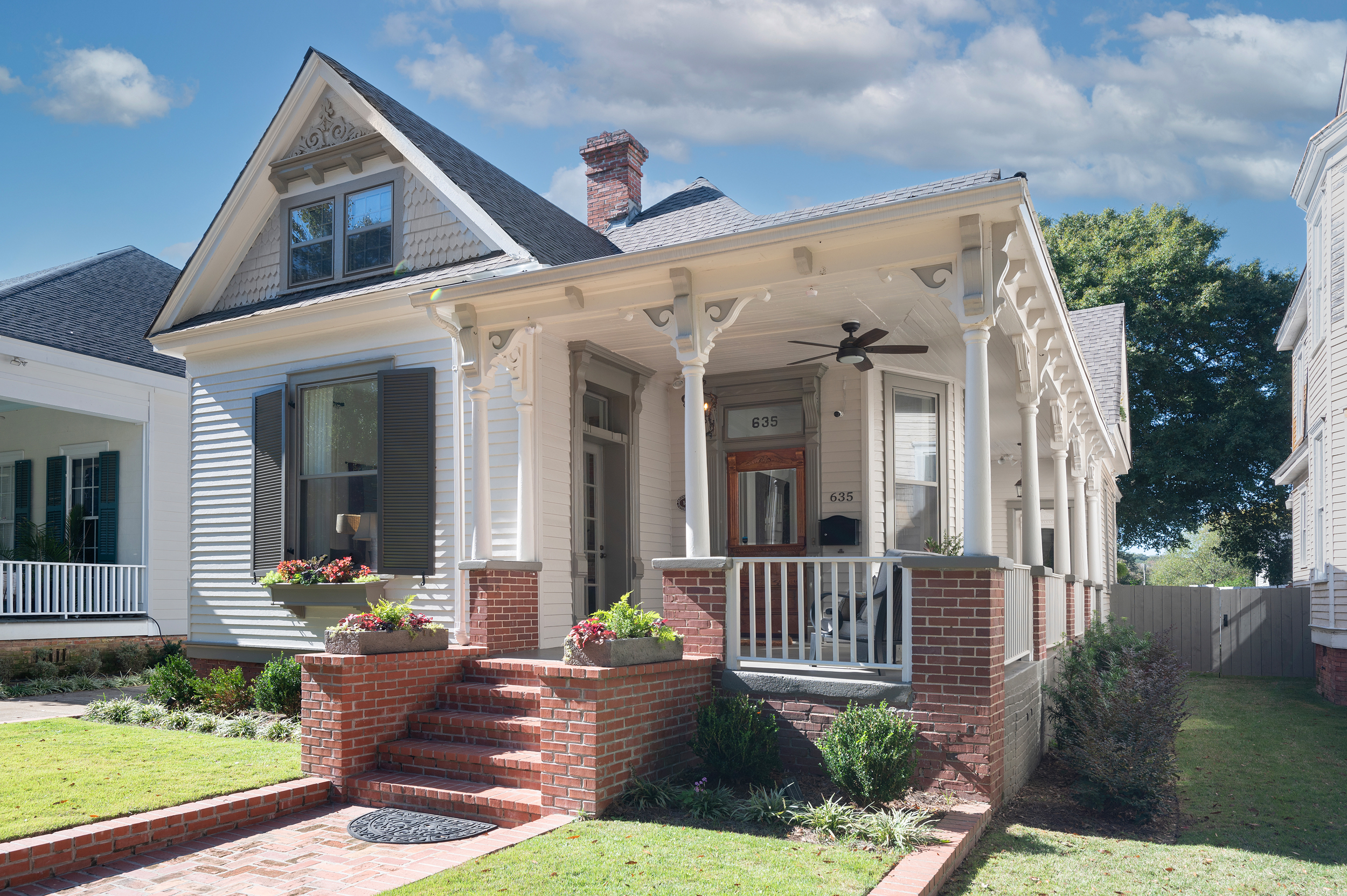Set on Broadway, in the heart of the historic district of downtown Columbus, GA, this exquisitely reimagined home stands as a testament to timeless elegance fused with contemporary luxury. Painstakingly taken down to the studs, this residence has undergone an unparalleled transformation, where every detail was considered and refined. The redesign introduced a sophisticated new layout, crowned by the addition of a grand staircase and an expansive upper-level extension, seamlessly adding approximately 1,000 square feet to the home. The space is a symphony of open-concept living, where sunlit rooms highlight the beauty of historical craftsmanship—fully operable original windows, expertly restored, share the stage with refined modern touches like new drywall, tasteful interior paint, and carefully curated fixtures. The dual primary suites, one conveniently located on the main floor and the other a crowning jewel of the upper level, offer flexibility and lavish comfort, each complete with luxury finishes and thoughtful details such as custom-built dog crates and elegant knee-wall storage. Meticulously designed for today’s lifestyle, the property features a state-of-the-art tankless water heater, new PEX plumbing, and a cutting-edge HVAC system, including mini-split units for ultimate climate control. The home’s enhanced structural integrity is matched only by its aesthetic touches, from the newly added front porch railings and brick pathway to the seamless, transparent-roofed rear deck—perfect for alfresco gatherings or tranquil evenings under the stars. Experience the vibrant allure of downtown living, where boutique shopping, upscale dining, and the Chattahoochee Riverwalk are merely steps from your door. Complete with a SimpliSafe security system, integrated Bluetooth speakers in en-suite bathrooms, and discreet modern technology like underground utility lines, this residence effortlessly encapsulates both luxury and peace of mind.