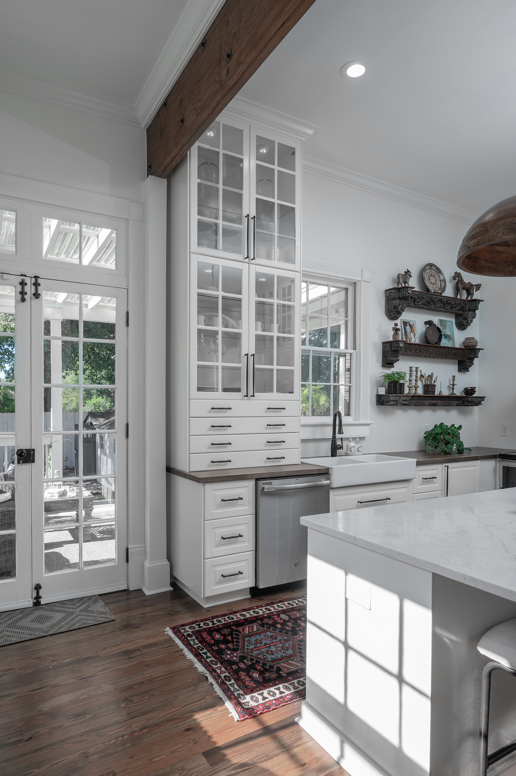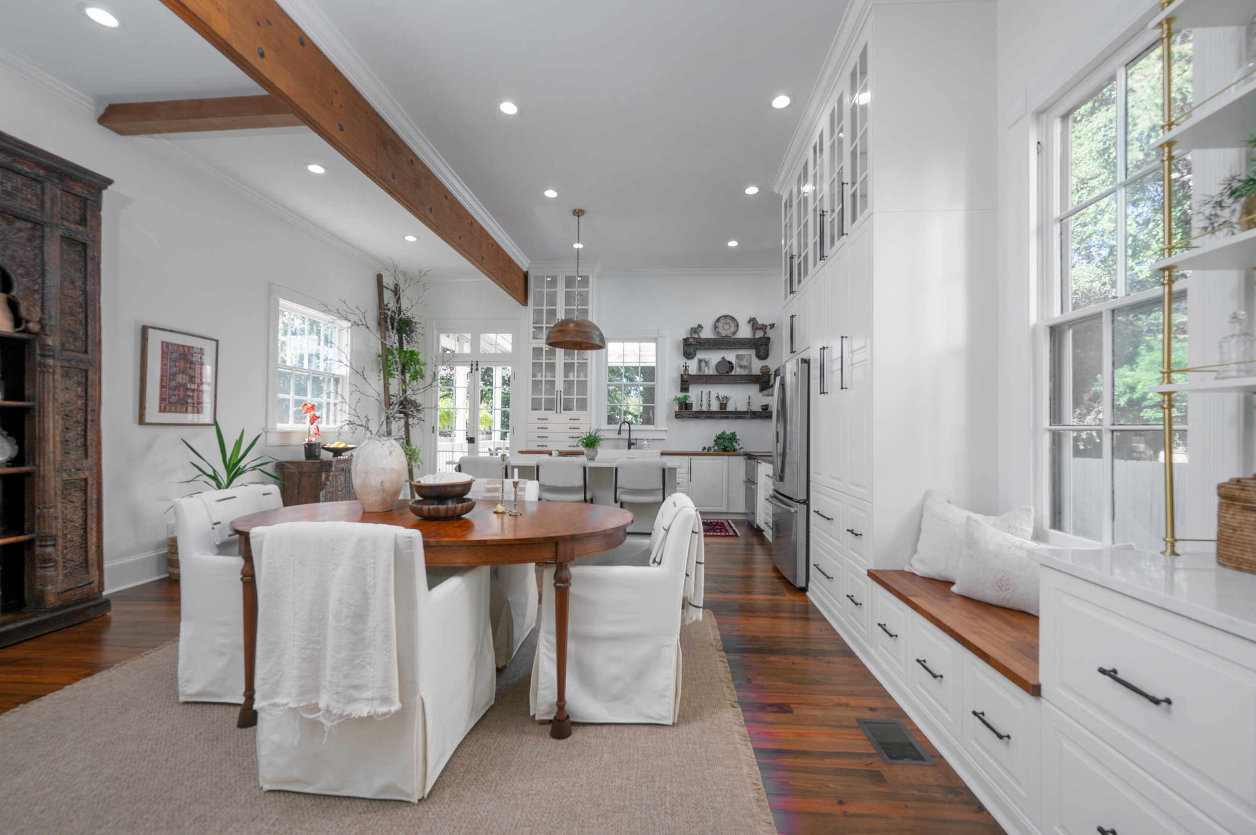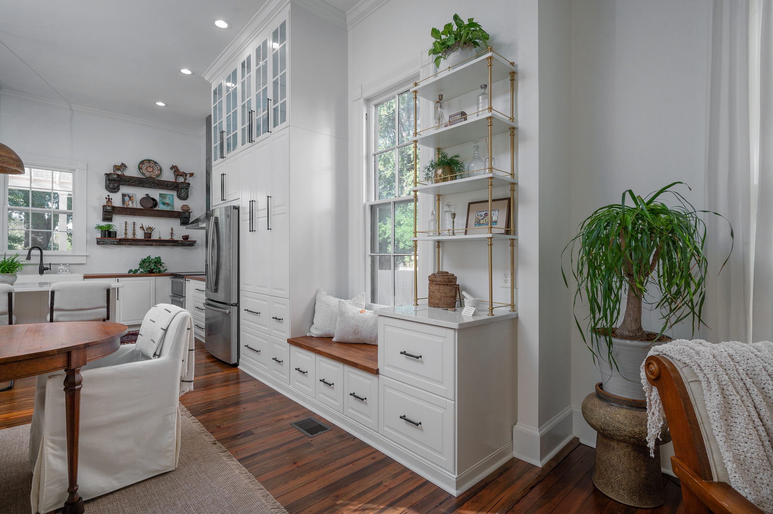 • New section of kitchen cabinets, window seat and bar installed