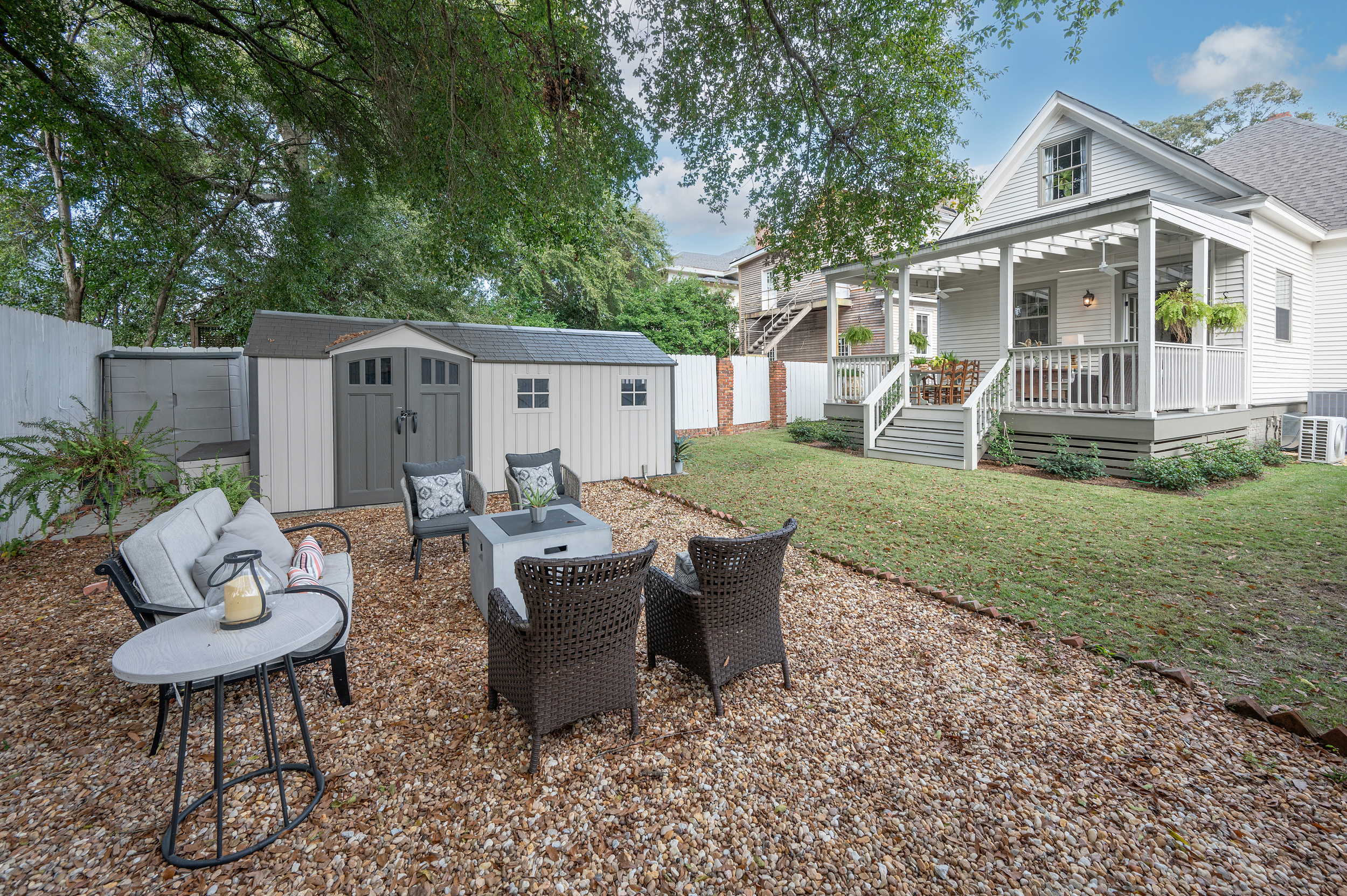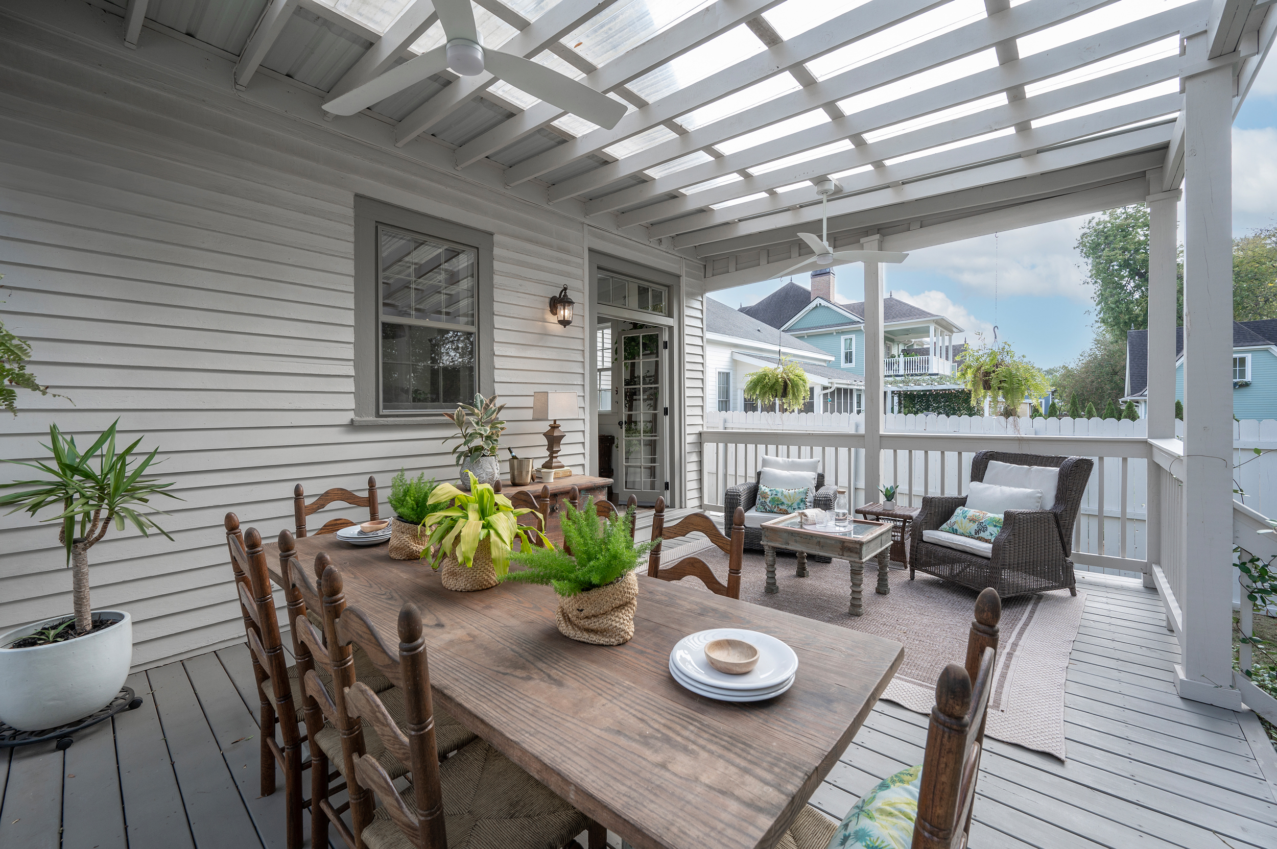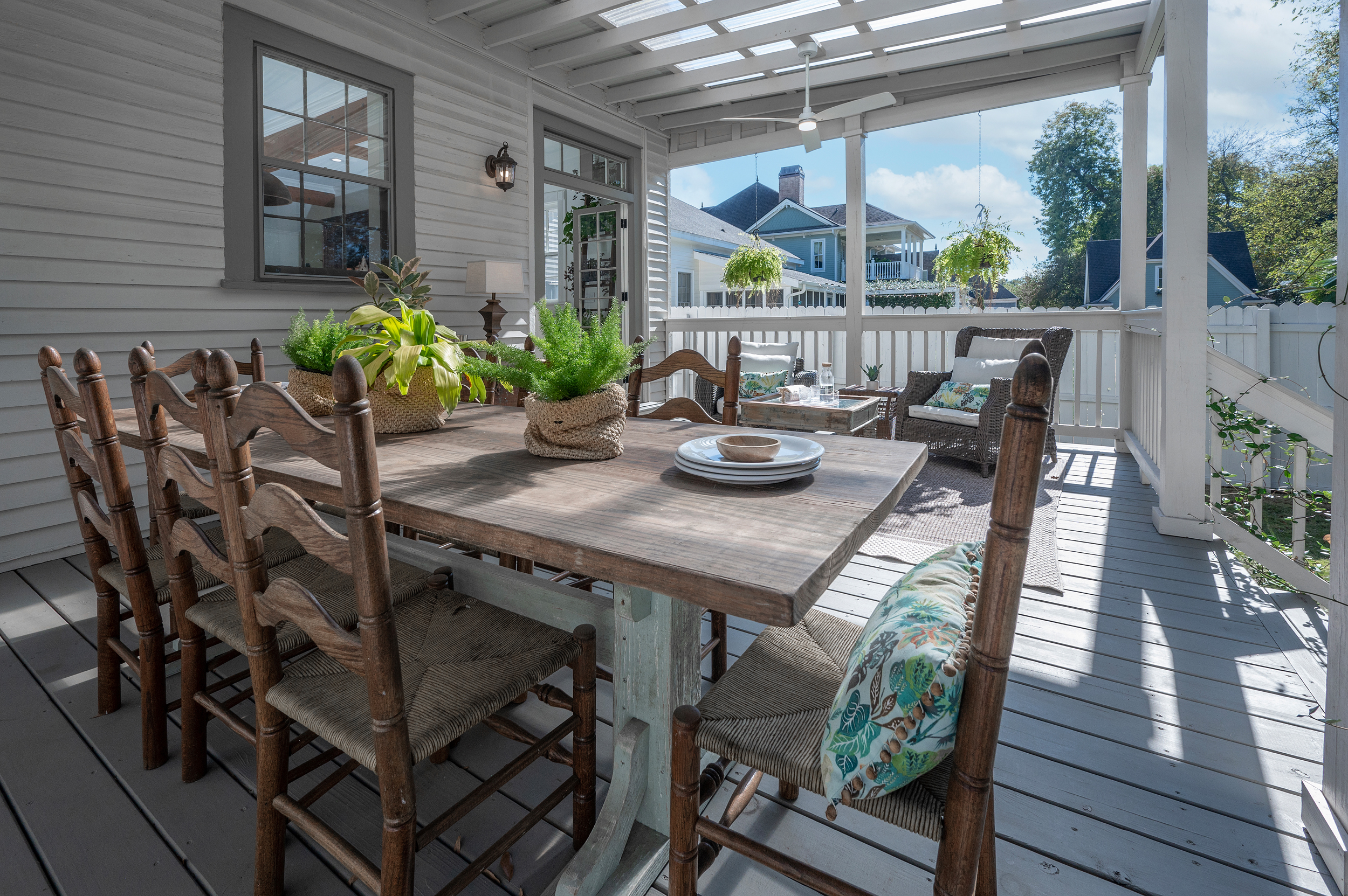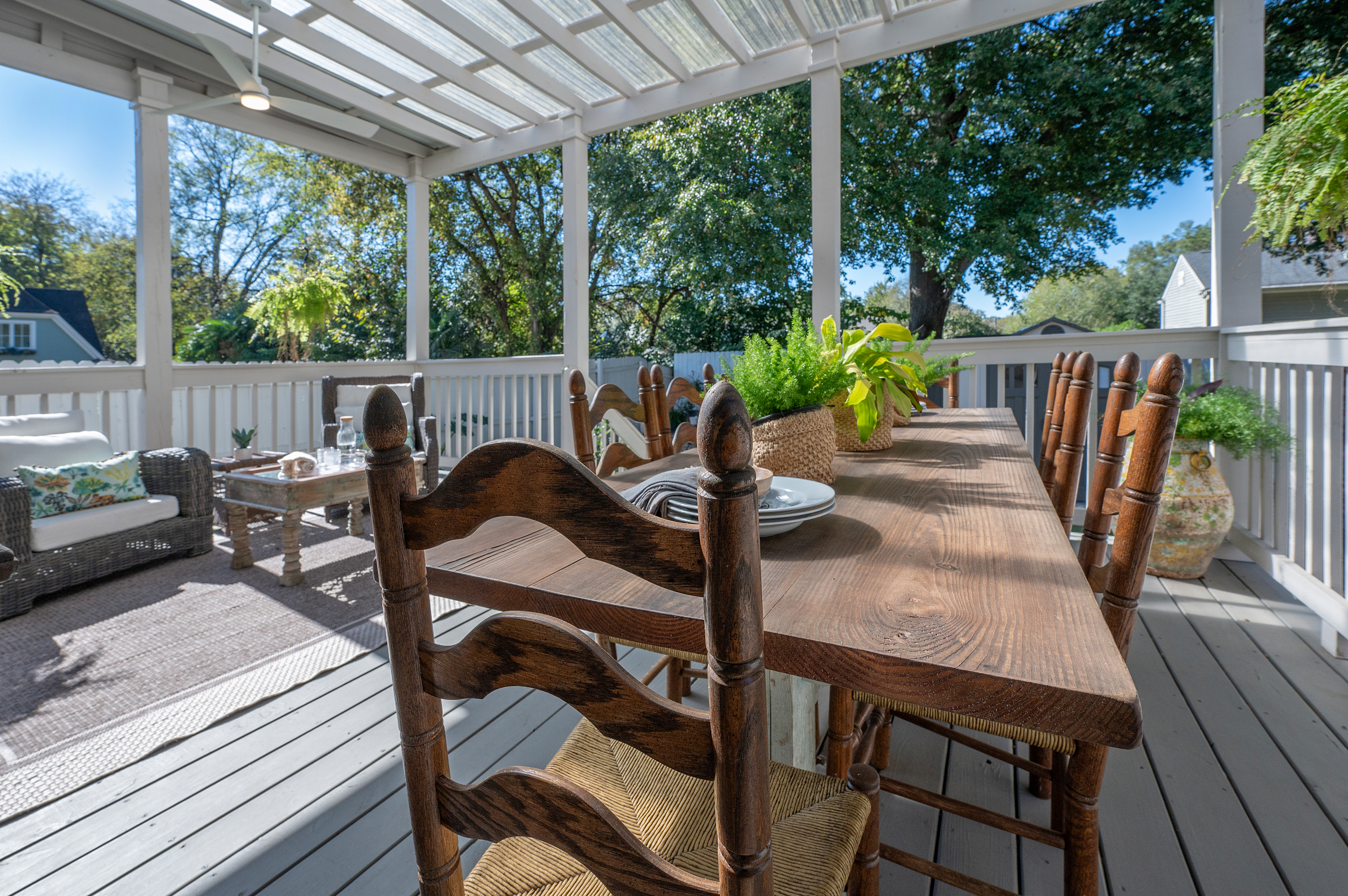 • We’re lucky to have a comfortable front porch…AND a very private back porch! ;-)