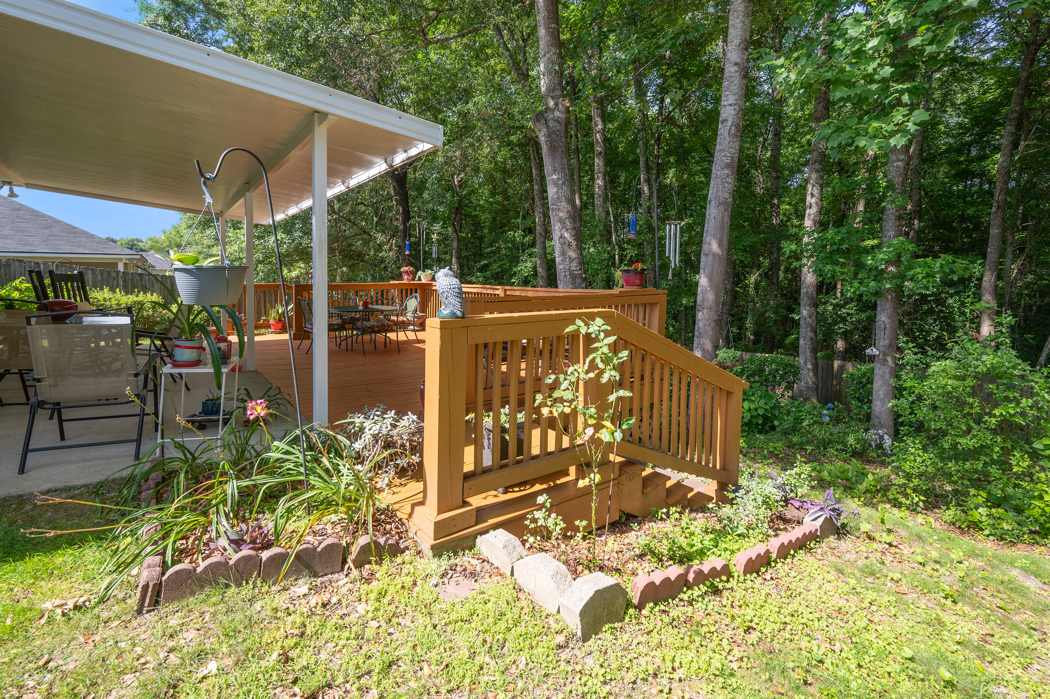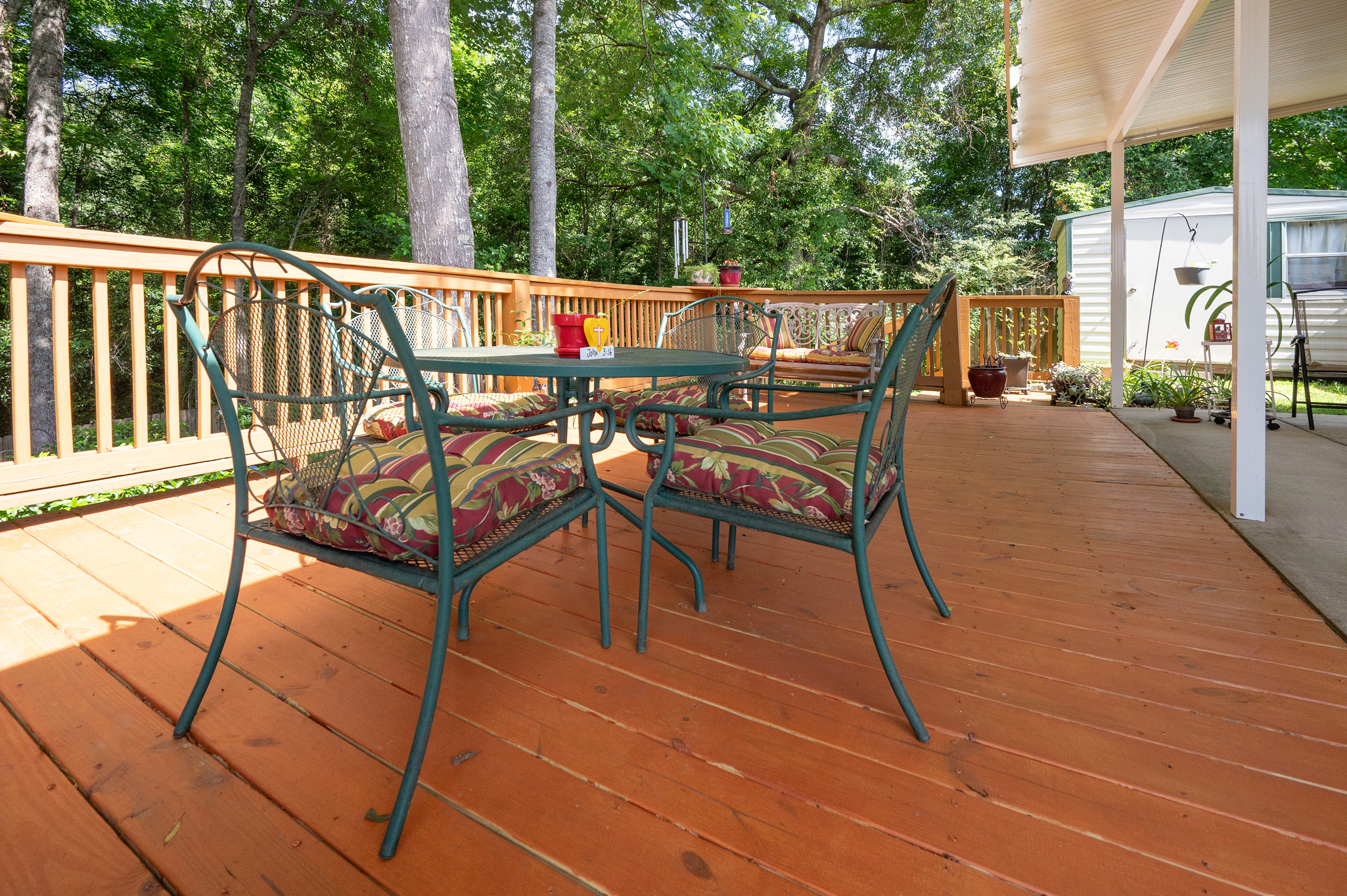 Step into this cozy, well-maintained gem that radiates charm and comfort. Nestled just off HWY 80, this home offers the tranquility of country living with the convenience of nearby shopping and dining. The inviting main living area seamlessly flows into the dining space and galley-style kitchen, which provides ample cabinet space and a separate pantry. Adjacent to the kitchen, you’ll find a convenient laundry room and access to the stunning backyard. This outdoor haven features a covered area and deck, perfect for relaxing and entertaining, overlooking a lush, landscaped garden—a true flower lover’s paradise. The backyard extends beyond the fence into a private wooded area, creating a serene escape. The master retreat offers privacy with a spacious walk-in closet and an ensuite bath featuring a separate tub and shower. Additional bedrooms and a bath are down the hall. Plus, there’s a bonus storage building in the backyard. The home is in impeccable condition with an HVAC system replaced in 2021. Don’t miss out on this enchanting abode!