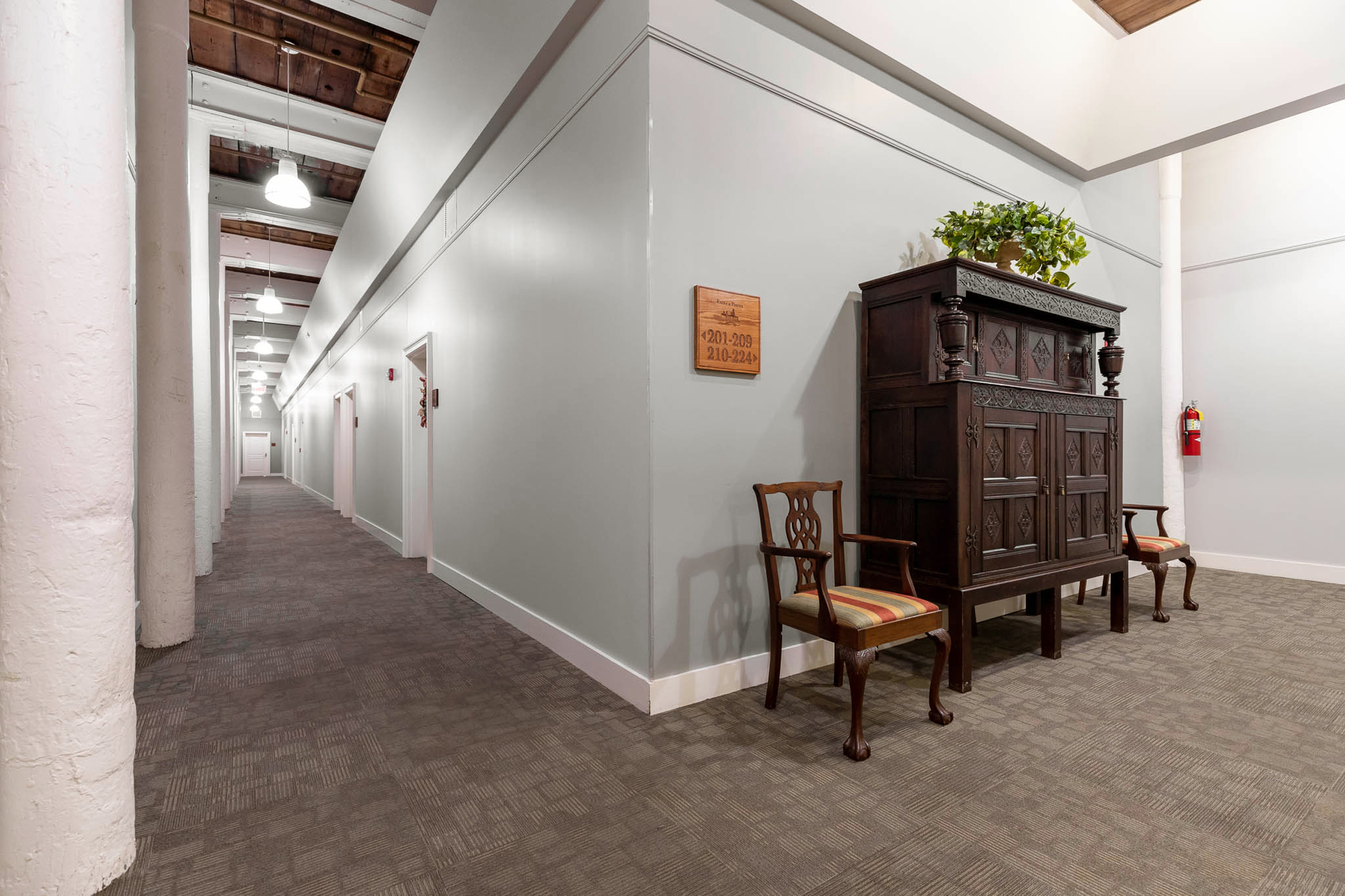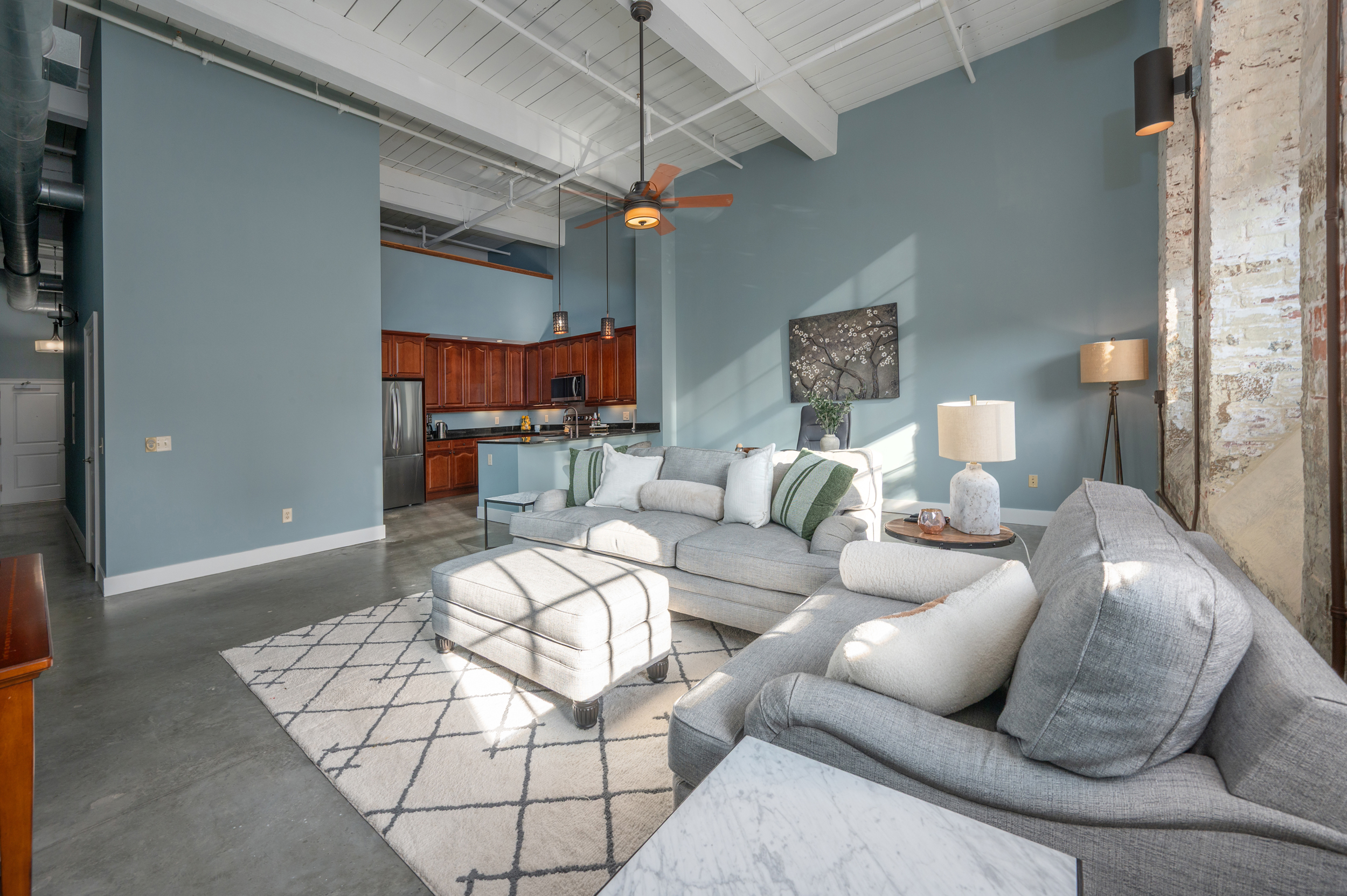 Unit 222 at Eagle & Phenix Lofts offers a front-row seat to Columbus’s dynamic downtown life with 1,195 square feet of stylish comfort. Perched on the 2nd floor overlooking Front Avenue, this one-bedroom, one-and-a-half-bath home frames the sunrise each morning with sweeping views of the historic streetscape. Inside, a long gallery-style hall opens to an expansive living area that gives you total freedom to arrange your perfect blend of dining, lounging, and entertaining space. The kitchen includes a bar with plenty of seating—ideal for coffee with friends or casual evening meals. The oversized bedroom feels like a retreat with its ensuite bath featuring double vanities, a soaking tub, and a separate shower. A custom closet system maximizes storage in the walk-in closet, while an additional loft (accessed by pull-down stairs) provides rare, premium storage space in a building where every square foot counts. There’s even a walk-in laundry room with a pantry area to keep your day-to-day essentials neatly organized.